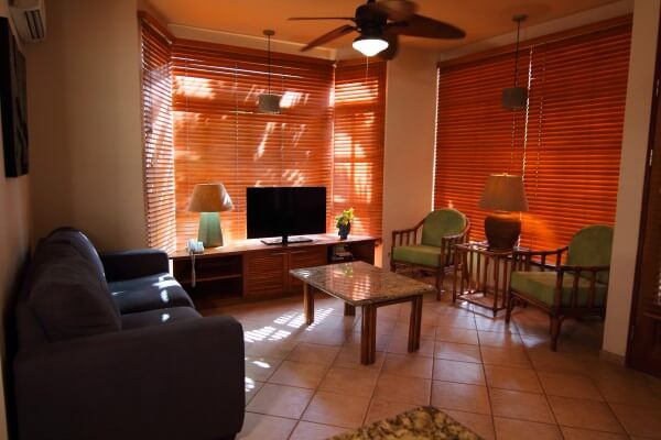 Situé au rez-de-chaussée avec sortie sur la terrasse privée. Tout le confort de la suite 1 chambre. Cuisine complète équipée pour cuisiner vos propres repas. Salon attenant avec canapé-lit gigogne. Salle de bain avec double lavabo et douche. Une chambre avec lit king et une seconde avec 1 lit Queen.